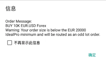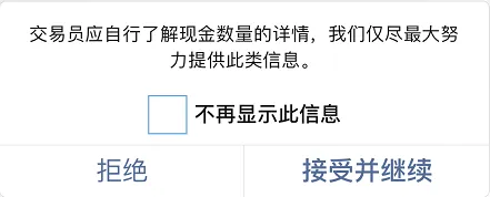 选择确认(低于2.5万刀的小额订单,会和其他用户的小额订单 合并,再提交到国际银行间市场):