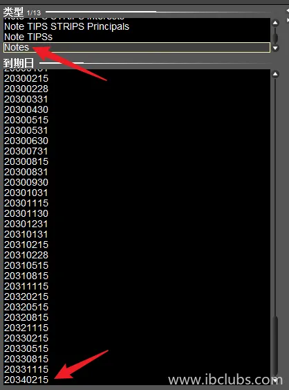 中长期国债Notes指2-10年的国债,如下图,最远显示为2034-02-15到期,距本文编辑时间(2024-03)约10年: