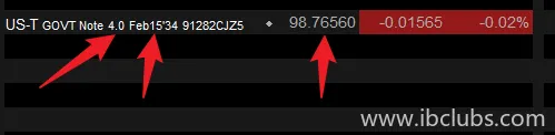 添加到产品报价栏后,显示报价为98.76560。注意,因为中长期国债都是付息的,下图代码中的4.0代表每年付息4.0%,1手国债=100美元/张×10张,则每年收息4.0%×1,000美元=40.0美元,每半年付息一次。