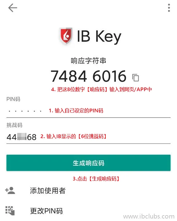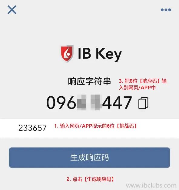 - 6位数字挑战码 (Challenge Code):IB给出的6位数字,把这6位数字输入到APP中,再验证身份(人脸/指纹识别或输入密码)