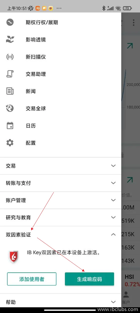登录APP后,进入【交易】,右下角有个【账户】-【双因素验证】-【生成响应码】
