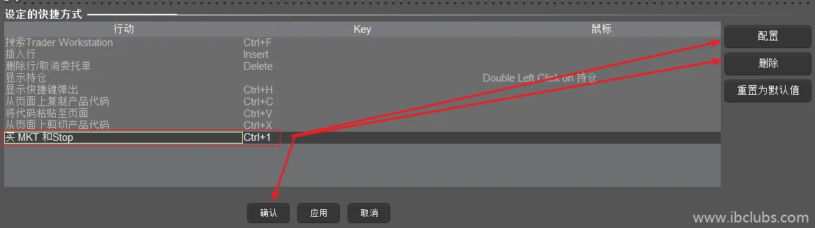 点击【确认】后,我们看到下面【设定的快捷方式】里面已经出现了按键为Ctra+1的【买 MKT 和 Stop】的快捷键: