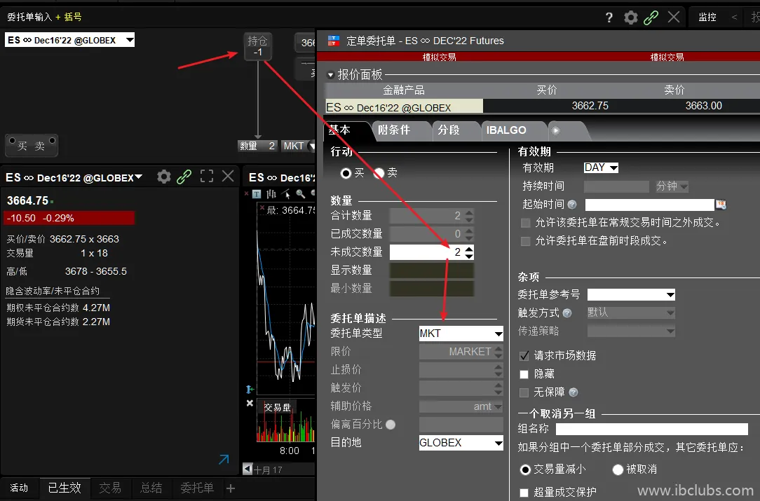 注意,该功能必须对已持有头寸的标的才能使用,如空头寸的标的,是无效的。如下图,已持仓一手标普500指数期货空单,现在使用一键反手,会直接买入2张期货,达到反手的效果: